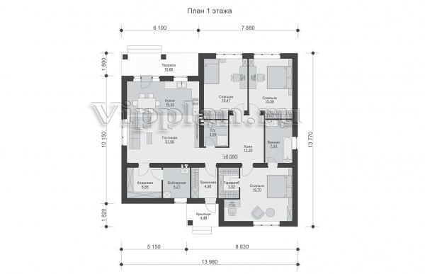 | Размеры дома: | 13.98м×13.77м |